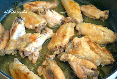 rosoliamo i pezzi facendoli dorare bene su tutte le parti in una casseruola con una noce abbondante di burro, qalche foglia di salvia ed un cucchiaio d'olio